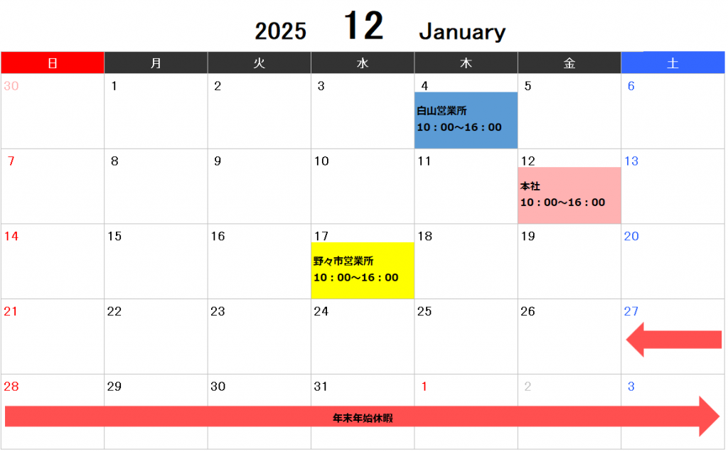 12月~1月に向けて、短期・長期ともにお仕事が増えるこの時期。