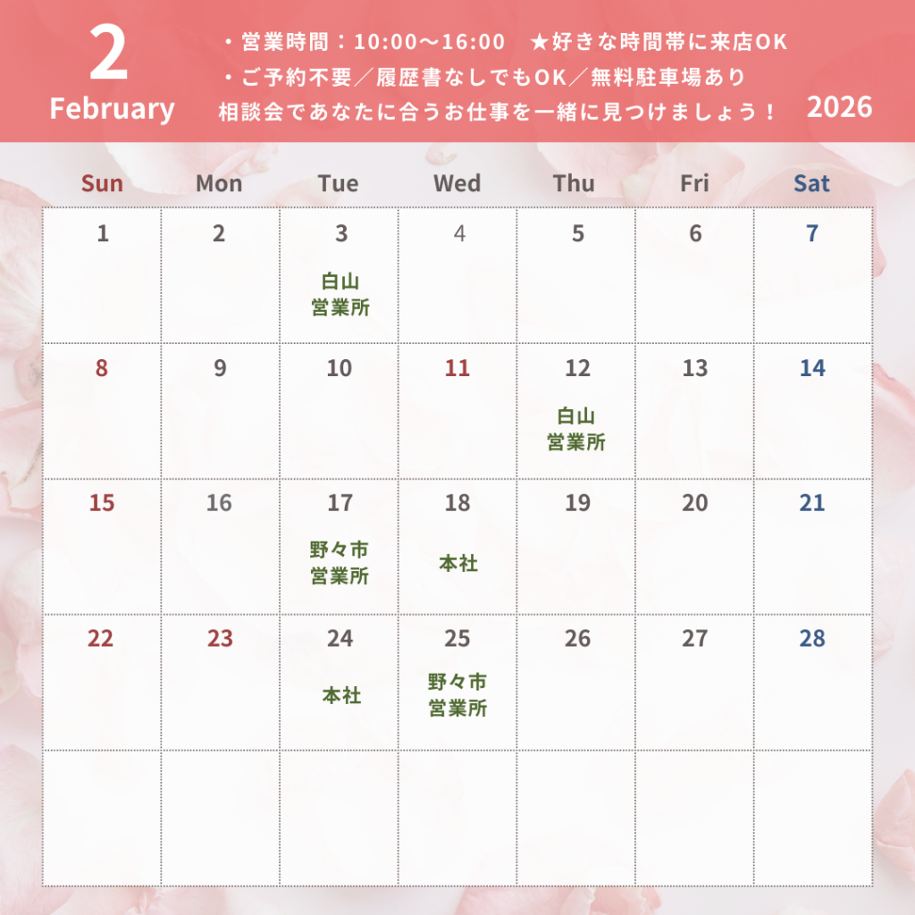【R8.2月】📢登録会&お仕事相談会のお知らせ🍫